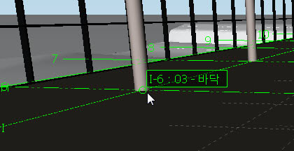 커서를 모형의 그리드 교차점 위로 가져갑니다. 수준의 이름 및/또는 참조가 표시됩니다.