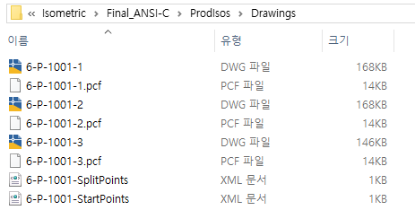 등각투영 도면을 작성하고 나면 일치하는 DWG 파일과 함께 별도의 PCF가 같은 폴더에 작성됩니다.
