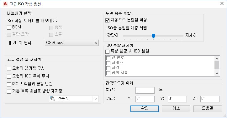ISO 도면 작성을 위한 고급 설정을 지정합니다.