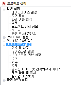 구성할 수 있는 ISO 설정에는 스타일, 치수, 경사 선, 레이블, 제목 블록 등이 있습니다.
