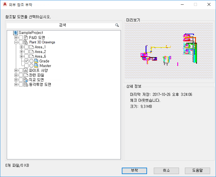 공동 작업 프로젝트에서 프로젝트 도면 파일을 부착합니다.