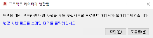 프로젝트 외부에서 수정된 도면을 열 때 이 대화상자가 표시됩니다. 도면을 복구하거나 백업 도면을 복원하는 경우에도 이 대화상자가 표시됩니다.