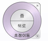 커서를 휠의 명령 위로 이동하면 쐐기 또는 버튼의 동작을 설명하는 툴팁이 휠 아래에 표시됩니다.