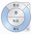 SteeringWheel은 여러 일반 탐색 명령을 단일 인터페이스로 결합합니다. SteeringWheel은 모형을 볼 수 있는 경우에 사용됩니다.