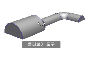 보기 명령을 사용할 때 커서를 끌어 모형의 뷰를 조정합니다. 끌기를 수행할 때 커서는 보기 커서로 변경되고 모형은 현재 뷰의 위치 주변을 회전합니다.