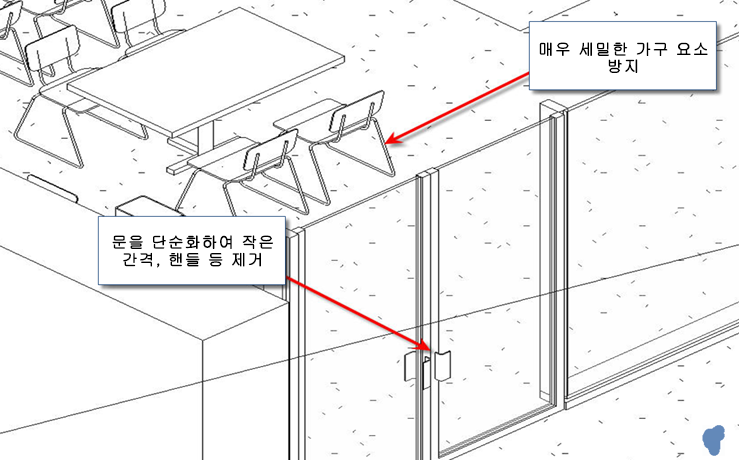 효율적인 AEC 시뮬레이션을 위해 적절한 세부 수준의 잘 구성된 형상이 필요합니다. 일반적으로 건축 기하학적 모형은 다양한 길이 크기의 피쳐를 포함합니다. 전체 시뮬레이션에서 작은 기하학적 피쳐의 효과 및 관련성을 고려하고 필요에 따라 제거하여 시뮬레이션 효율성을 유지합니다.