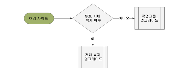 가장 좋은 방법은 SQL 서버에 가장 빠르게 연결되는 사이트부터 시작하는 것입니다. 업그레이드를 수행할 준비가 되면 단일 사이트 절에 설명되어 있는 단계를 수행합니다. 다른 사이트로 이동하기 전에 선택한 서버를 최종 릴리즈 및 서비스 팩으로 업그레이드합니다.
