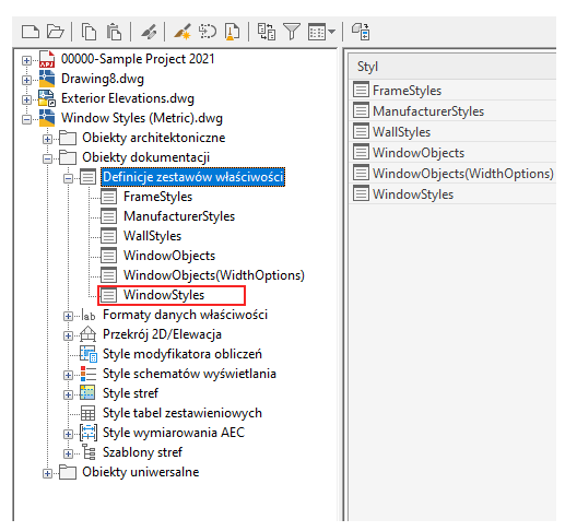 Rozwiń definicję Zestaw właściwości i wybierz opcję Style okien.