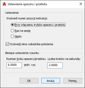 Ustawia rozmiar każdego kroku w jednostkach rysunku (zmienna systemowa STEPSIZE).