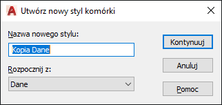 Przywraca okno dialogowe Nowy styl tabeli, w którym można zdefiniować nowy styl komórki.