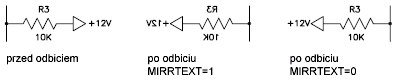 Uwaga: Domyślnie po odbiciu obiektu tekstowego kierunek tekstu pozostaje niezmieniony. Aby tekst został odwrócony, należy ustawić wartość zmiennej systemowej MIRRTEXT na 1.