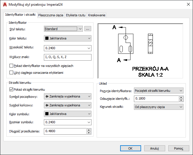 Karta Identyfikator i strzałki (Menedżer stylów przekroju)