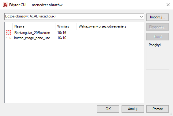 Obrazy niestandardowe dla poleceń można importować i eksportować.