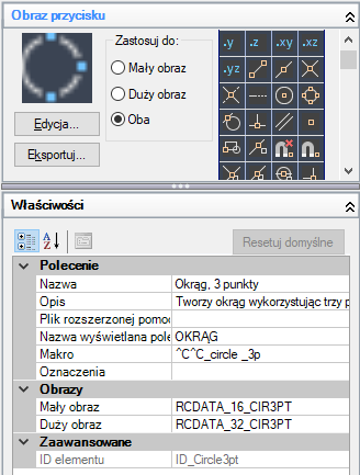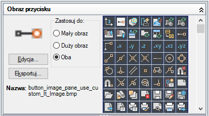 Wybierz obraz z listy obrazów, a jego nazwa zostanie przypisana do właściwości obrazu Mały obraz i/lub Duży obraz wybranego polecenia.