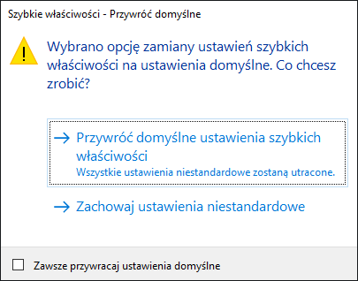 Aby przywrócić domyślne ustawienia szybkich właściwości