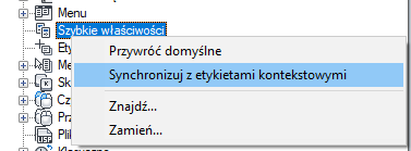 Aby zsynchronizować szybkie właściwości z etykietami kontekstowymi