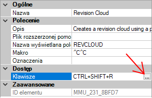 - W panelu Właściwości kliknij pole Klawisze, a następnie kliknij przycisk […], aby otworzyć okno dialogowe Klawisze skrótów.