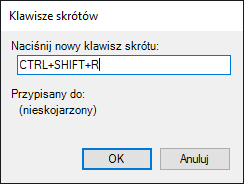 - Kliknij przycisk OK, aby przypisać kombinację i zamknąć okno dialogowe Klawisze skrótów.
