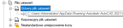 - W Eksploratorze Windows lub Eksploratorze plików wybierz <litera dysku>:\Users\<nazwa profilu użytkownika>\AppData\Roaming\Autodesk\<nazwa produktu>\<numer wersji>\<język>\support\<nazwa pliku ustawień>.cuix.