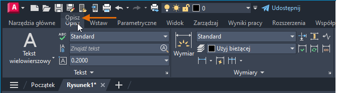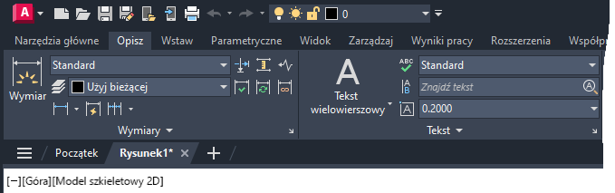 W tym ćwiczeniu zostanie zmienione położenie karty Opis i panelu Wymiary.