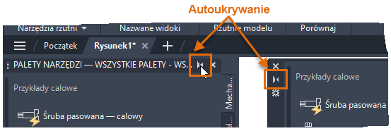 Umieszczenie kursora na zwiniętej palecie spowoduje jej tymczasowe rozwinięcie.