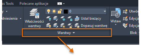 Panele na karcie wstążki można uwalniać w oknie aplikacji. Uwolniony panel wstążki pozostaje widoczny bez względu na to, która karta wstążki jest aktywna. To przydatna funkcja w przypadku częstego przełączania między kilkoma różnymi typami narzędzi. Można na przykład uwolnić panele Warstwy i Właściwości, tak aby były one widoczne nawet przy aktywnych kartach Wstaw lub Opis.