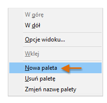 Kliknij prawym przyciskiem myszy na dowolnej karcie i z menu wybierz opcję Nowa paleta. Zostanie utworzona nowa paleta narzędzi, w której można dodawać i porządkować często używane narzędzia.