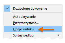 Kliknij prawym przyciskiem myszy dowolne puste miejsce wewnątrz palety HYT. Z menu wybierz polecenie Opcje widoku.