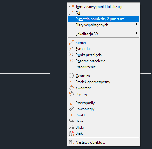 W tym ćwiczeniu użyjemy opcji lokalizacji względem obiektu Punkt symetrii. Upewnij się, że lokalizacja względem obiektu Punkt symetrii jest włączona.