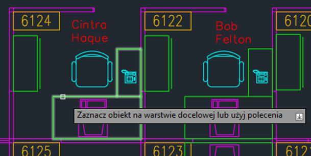 Jak wskazuje nazwa, opcja Zmień na warstwę bieżącą (polecenie WARAKT) zmienia obiekt z jednej warstwy na inną.