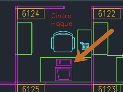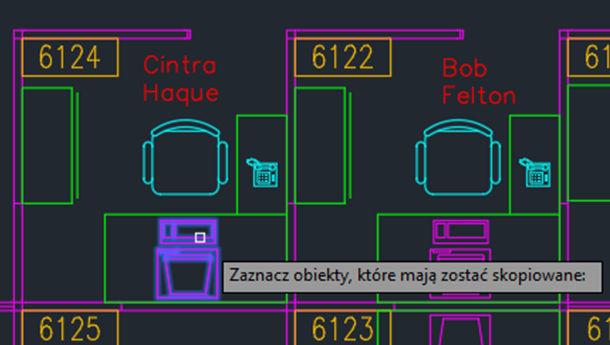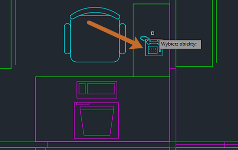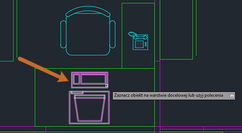 1. Wybierz obiekt w obszarze rysunku, który znajduje się na warstwie FURNITURE.