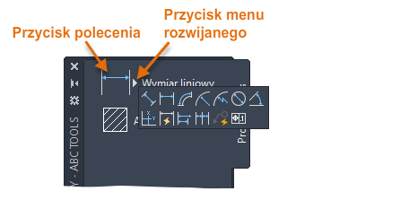 Można utworzyć narzędzie wymiaru, przeciągając obiekt wymiaru na paletę narzędzi. Nowo utworzone narzędzie wymiaru zawiera przycisk rozwijany.