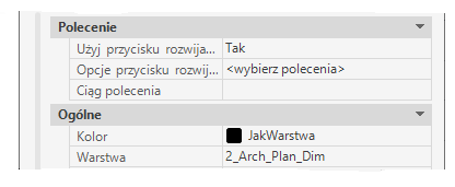 Ciąg polecenia — zawiera makro polecenia uruchamiane po kliknięciu narzędzia. Ta opcja jest dostępna tylko wtedy, gdy wyłączona jest opcja Użyj przycisku rozwijanego.