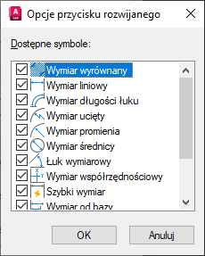 Opcje przycisku rozwijanego — określa, które polecenia są wyświetlane w menu rozwijanym.