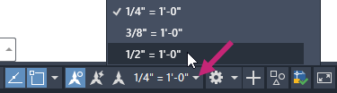 3. Na pasku stanu kliknij przycisk Skala opisu i wybierz z listy opcję 1/2"=1'-0".