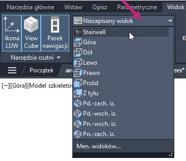 3. Na wstążce kliknij kartę Widok > panel Nazwane widoki > listę rozwijaną Nazwane widoki i wybierz opcję Stairwell.