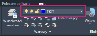 4. Na wstążce kliknij kartę Narzędzia główne > panel Warstwy > listę rozwijaną Warstwa i sprawdź, czy warstwa TEXT jest warstwą bieżącą. Jeśli nie, wybierz ją z listy rozwijanej Warstwa, aby ustawić ją jako bieżącą.