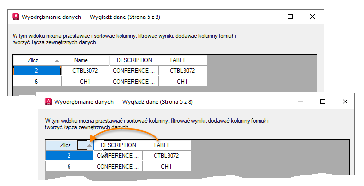 Możliwość wyodrębnienia informacji o atrybutach z bloków do tabeli lub do pliku CSV w celu użycia w innej aplikacji pozwala zaoszczędzić czas i zredukować liczbę kosztownych błędów, które mogą wystąpić w przypadku wielokrotnego wprowadzania danych. Kreator wyodrębniania danych stanowi najskuteczniejszy sposób wyodrębniania informacji o atrybutach z bloków wstawionych do rysunku. Można go użyć również do wyodrębnienia wartości właściwości skojarzonych z innymi typami geometrii zdefiniowanymi w rysunku wraz z informacjami ogólnymi o pliku rysunku.