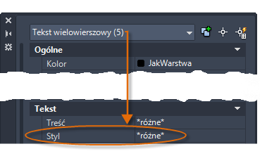 Podobnie jak w przypadku innych elementów opisowych tekst wielowierszowy oferuje dużą liczbę ustawień. Te ustawienia można zapisać za pomocą polecenia STYL jako stylu tekstu. Dostęp do stylów tekstu można uzyskać, klikając strzałkę rozwijaną na panelu Opis. Bieżący styl tekstu jest wyświetlany u góry listy rozwijanej.