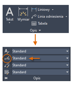 Aby otworzyć Menedżera stylów wymiarowania, kliknij wskazany przycisk. Istnieje możliwość utworzenia stylów wymiarowania, które pasują do niemal dowolnego standardu, ale całkowite ich określenie jest czasochłonne. Z tego powodu należy zapisać każdy utworzony styl wymiarowania w jednym lub wielu plikach szablonu rysunku.