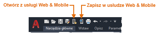 W przypadku konieczności dostępu do rysunków ze zdalnej lokalizacji przydatne będą polecenia Zapisz na koncie aplikacji internetowej i mobilnej oraz Otwórz z konta aplikacji internetowej i mobilnej.