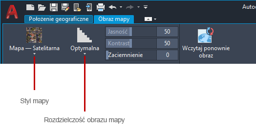 Po zalogowaniu na koncie w portalu Autodesk Account można zmienić rozdzielczość obrazów map, ich zakres, dostosować ich nieprzezroczystość lub zaktualizować je do najnowszej wersji dostępnej w usłudze map online.