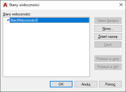 Ustawia wybrany stan widoczności jako bieżący stan do wyświetlenia w Edytorze bloku. Nie zmienia domyślnego stanu widoczności, który jest wyświetlany podczas wstawiania bloku do rysunku, ani nie zmienia wyświetlanego stanu widoczności odniesień do bloków, które są już wstawione i edytowane w rysunku.