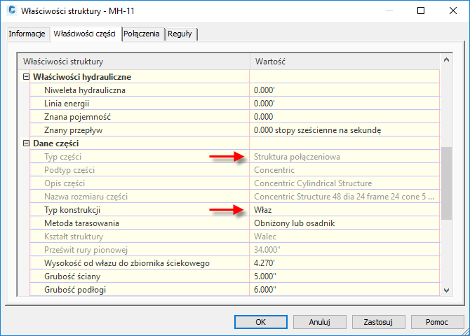 Dzięki odwzorowaniu parametrów i zastosowaniu ich do struktur w istniejących sieciach rurociągów nie będzie wymagane ręczne określanie wartości podczas używania polecenia Analizuj sieć grawitacyjną.