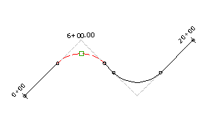 Umożliwia dodanie etykiet przecięcia wielu stycznych w każdym punkcie przecięcia (PP) na linii trasowania, zarówno rzeczywistym punkcie przecięcia dwóch stycznych, jak i wirtualnych położeniach PP dla łuków i grup krzywa przejściowa-łuk-krzywa przejściowa.