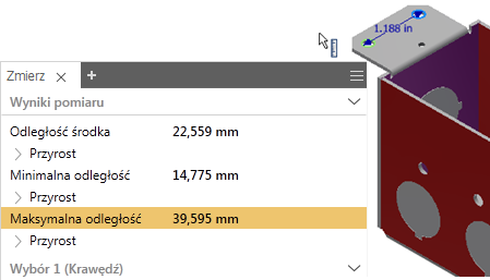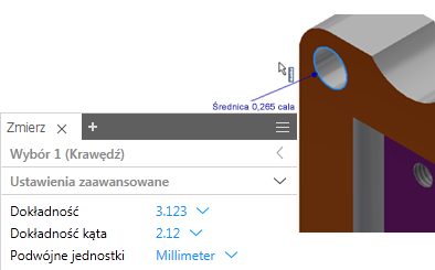 Aby uzyskać więcej informacji, zobacz temat Mierzenie odległości, długości, kąta, obwodu lub pola w modelu.