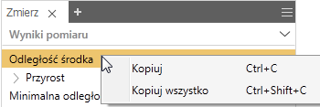Można łatwo przełączać między opcjami Minimalna odległość, Odległość od środka do środka i Maksymalna odległość w przypadku wartości przyrostu odległości.