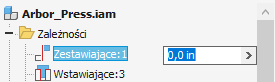 - W pliku zespołu i prezentacji można wybrać nową opcję menu przeglądarki Edytuj wartości w przeglądarce, aby włączyć lub wyłączyć pole edycji w przeglądarce (niedostępne w programie Inventor LT).
