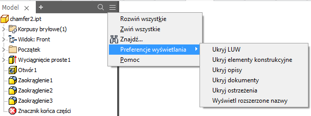 Aby uzyskać więcej informacji, zobacz temat Przeglądarka programu Inventor.