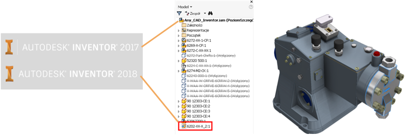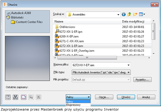 W programie Inventor 2017.4 technologia AnyCAD została rozbudowana, umożliwiając wykorzystanie plików programu Inventor 2018 w projektach programu Inventor 2017. Oznacza to, że można teraz pracować z innymi użytkownikami korzystającymi z wcześniejszych lub nowszych wersji programu Inventor niż ta, w której się pracuje. Aby ułatwić identyfikację wersji pliku programu Inventor, w oknie dialogowym Otwórz jest teraz wyświetlana wersja programu Inventor, w której ostatnio zapisano plik.